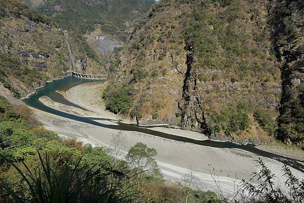 回程因斜陽灑在三龜戲水河谷,我們再次逗留,這裡也可遠眺巴陵橋!