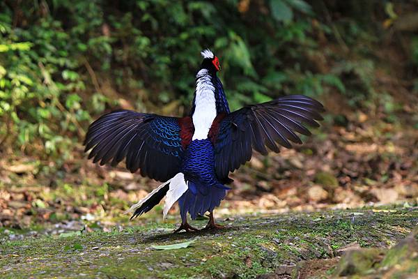 沒拍到母藍腹鷴展翅